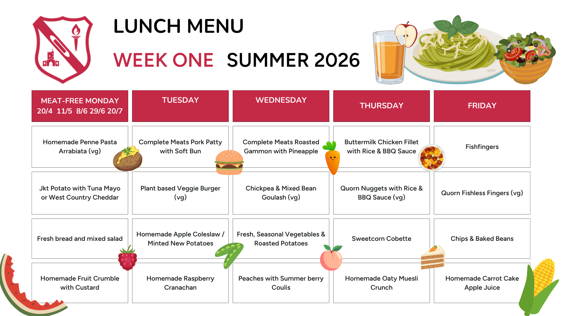 Our school meals are freshly prepared each day to provide healthy, balanced choices for all pupils. Please select your child’s option before the weekly deadline and notify the school of any allergies or dietary needs.